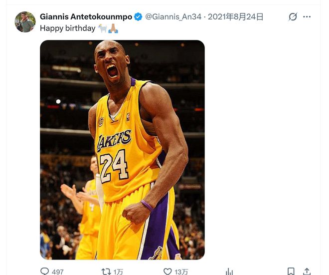 而另一个社交媒体X(推特)上字母哥更夸张,删除了自2021年以来全部雄鹿队内容,只留下为离世偶像科比庆祝生日的那条。